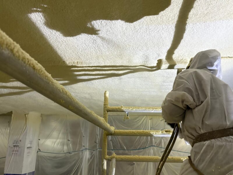 In deze parkeergarage hebben wij het plafond voorzien van isolatie, afgewerkt met een vlamvertragende coating. De toegepaste isolatie draagt bij aan een betere thermische scheiding tussen de garage en de bovenliggende bouwlagen. Door de afwerking met een vlamvertragende coating voldoet de constructie bovendien aan strenge brandveiligheidseisen. Het resultaat: een duurzame en veilige oplossing die zowel comfort als veiligheid verhoogt.